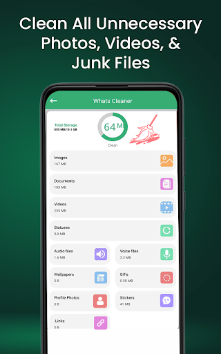 Whats web scanner provides a tool to clean and manage all your WA junk files including Images, videos, Gifs, Audio, wallpaper, documents, and voice notes.