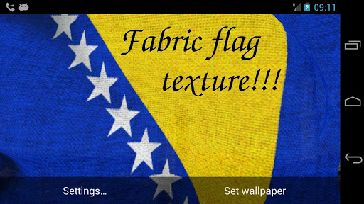 Feel proud of your country, let this Bosnia flag live wallpaper always flying high in your home screen!