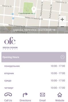 Вещание 24 часа, 7 дней в неделю; 85% – телепрограммы собственного производства, 15% – приобретенный контент; Вещание в кабельных сетях по всей Одессе и Одесской области; покрытие составляет – 98%; Odessa Fashion Channel можно смотреть в интернете – OFC.OD.UA; Формат изображения – 43; формат видеосигнала – SD.