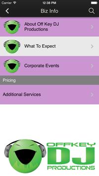 Offkey DJ Productions presents you this mobile app which makes it easy to check availability for your event, keep up to date on local events, and contact us with one click!