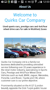 The Quirks Car Company app helps prospective car buyers sell their current car, choose their next one and find out about warranties and financing. Push notifications together with our social media channels help keep buyers up to date with the latest changes to our stock of highly desirable sports, prestige and four wheel drive vehicles, while enquiry forms allow users to register interest in a particular vehicle from their phone as soon as it arrives.
