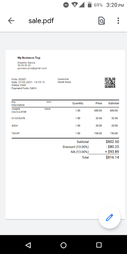Manage your business sales, including credit sales, control customer payments, and schedule payments. Generate receipts / tickets in PDF format.