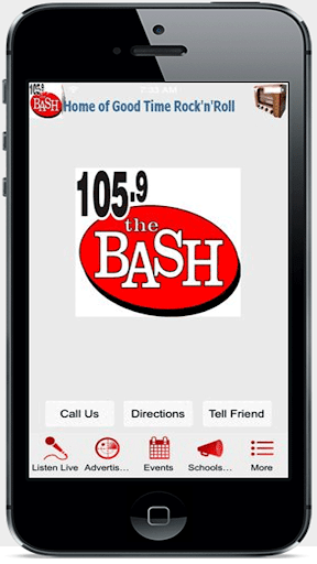 Down load the FREE app now to your smart phone and tablet and start streaming 105.9 the bash anywhere anytime.