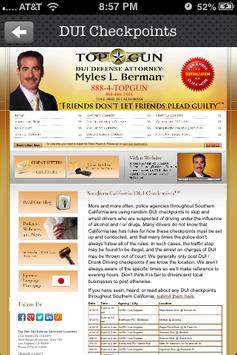 At the Law Offices of Top Gun DUI Defense Attorney® Myles L. Berman, our dedicated DUI and drunk driving attorneys provide people arrested for DUI throughout Southern California — from Ventura and Los Angeles to Orange County, the Inland Empire, and San Diego — with aggressive legal representation they can count on. Being arrested and charged with DUI is a frightening experience which can lead to severe financial penalties, driver’s license suspensions/revocations, and even jail or prison time. If you have been arrested and charged with DUI anywhere in Southern California, call the experienced team of DUI and drunk driving attorneys at the Orange County, Los Angeles, and Ventura offices of Top Gun DUI Defense Attorney® Myles L. Berman to find out why we say “Friends Don’t Let Friends Plead Guilty”™.