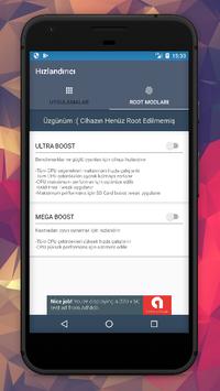 Oyunları başlatmadan önce diğer uygulamaların bellek kullanımını sona erdirmek için Root modları Hızlandırıcı ya da tek dokunuşla hızlandırma özelliğini kullanın, oyun hızınızı @'dan fazla arttırır!!