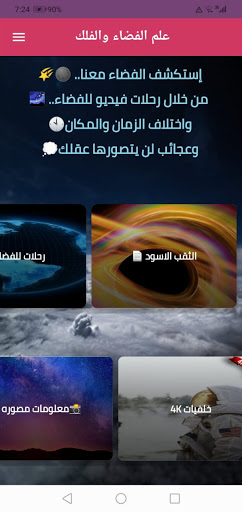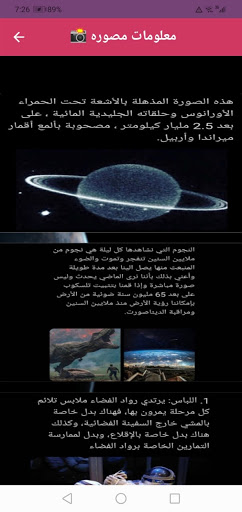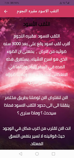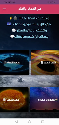 The Astronomy and Space Science Program is an application that provides a set of information and videos about the world of outer space to all those interested in searching for information on astronomy in Arabic, so that the application addresses a group of points including: the black hole, the stages of the death of the sun, and videos of trips through space. Planetary sounds and many other topics that can be considered as lessons in astronomy and space