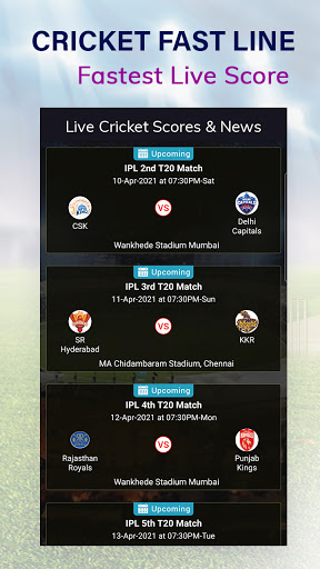 Fast Cricket Live Line in Indian T20 League we have covered every single detail about IPL live score and updates. You can check IPL Schedule 2021 timing of any match as well as live IPL score of any match in just tap. This IPL fixture is fully authentic and truly released by IPL Committee of BCCI.