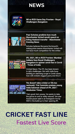 IPL Live Match Score 2021 App Contains detailed information about all IPL squads of all 8 teams. You can check IPL live match & list of every team details including player profile and statistics. Live IPL Score App also contains IPL news & updates. We'll also notify you about latest news and scores as well.
