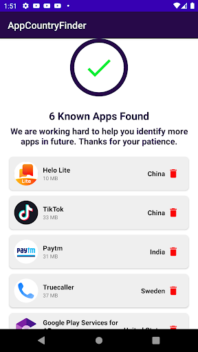 App Country Finder is a tool to detect origin country of apps installed in your device.