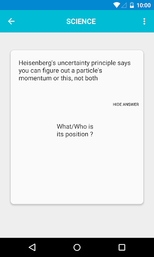 • Within each category the individual questions or clues are randomized. This means that every time you open your favorite category, you are greeted with a new order of questions, which are not the same as the last time. This makes the categories fun and fresh!