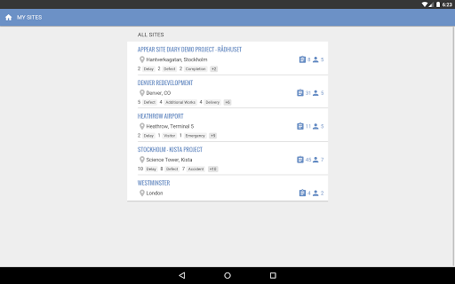 Site Diary app replaces the existing paper site diary, daily construction reports or site journal, where field work make a report of things that occurred on their projects. By using a daily construction report app, you can save up to 60mins per day on this process. Our easy to use form/template provides you with everything you need at your finger tips. With Site Diary's cloud-sync technology, when a team member creates a report, the information is synchronized with all team members instantaneously.