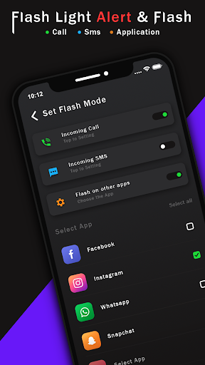 Get flash on call and sms on your cell phone and with that multi white bright LED flash alerts notification. you can active your flash blink on call app for every activity to know about notifications in your cell phone. So, you can customize for every application It’s setting bright flashlight time everyone.