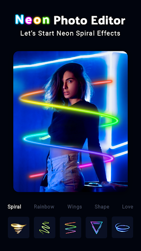 Neon Photo Editor - Auto Background Changer using it Your photo experience will be unforgettable with the neon spiral. PicSky offers a comprehensive collection of spiral effects in different styles. In addition to neon effects there are Spiral, Rainbow, Wings, Love and much more.