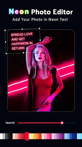 Neon Photo Editor - Auto Background Changer is for free now! Start your photo editing journey and try all kind of photo montage effects like bubbles, hearts shapes, stars shining over you. Choose any photo you like on your gallery or take one instantly with your device and switch for glow art effects, neon effect, glitch effects and so on.