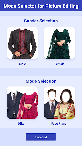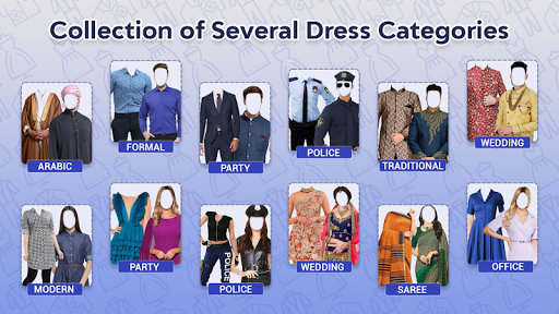Men & Women Fashion - Suit Photo Editor app is specially design for those who wants to look fashionable and stylish. Download the amazing dress app and change your look every day and every time with few clicks away. There are number of men suit and women fashion categories and sub categories to edit your photos in latest collection of dresses like Modern, party, traditional, cultural, Vietnamese, European, African, Asian, office dresses, casual, formal, informal, sari, bridal dresses, wedding guest dresses, 3 piece suit Walima dresses, chunri, ghagra, lehnga, and many more of your choice. No matter you are from east or west, we provide you a vast collection of eastern (Bang la and Gujarati) as well as western collection like European countries. New dresses are added according to latest fashion in dress app.