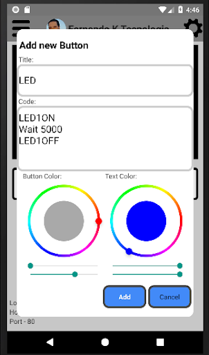 Adicione botões customizados, contendo título, código, posição na tela, cor do botão e a cor do texto. Possível também alterar e deletar botões já criados.