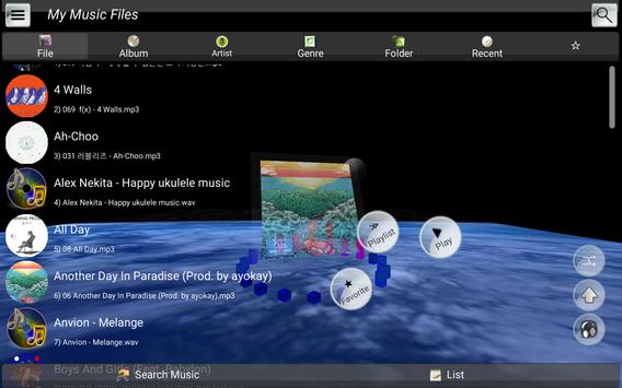 - 3D effect & 12 band Equalizer, wav mp3 ogg aac file 지원