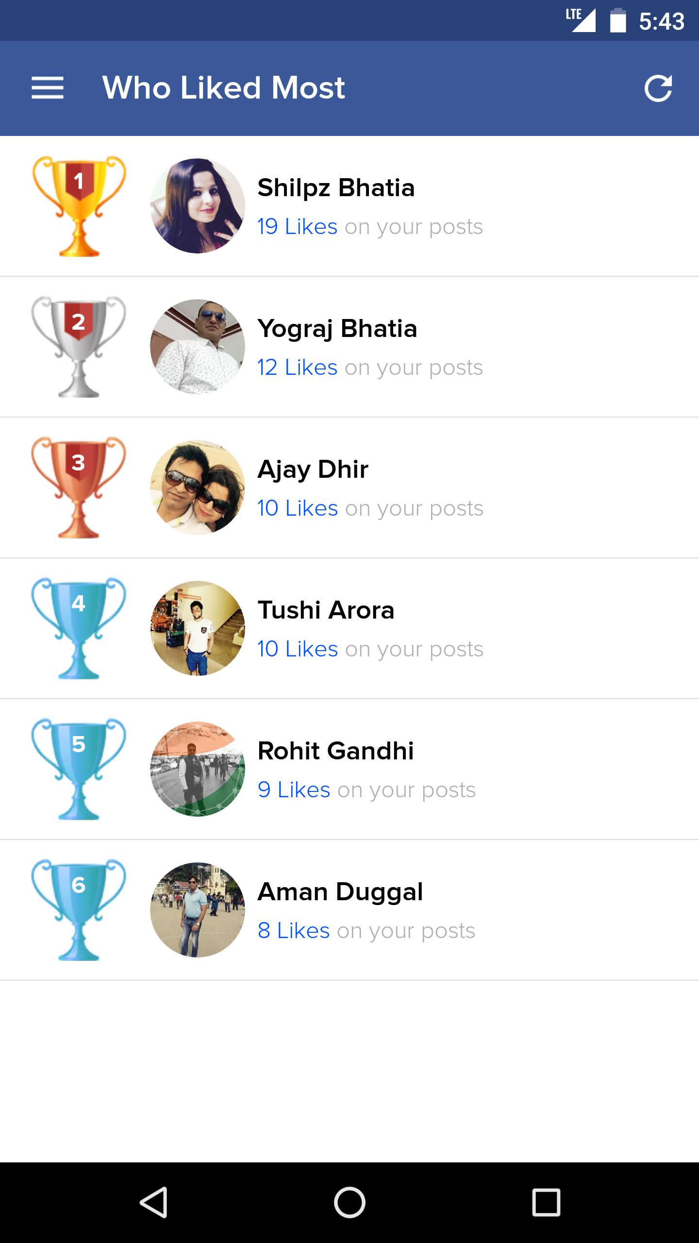 Find out your best friends by number of likes they have done on your posts
