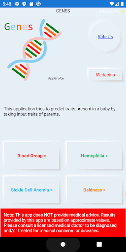We have added more traits based prediction to existing Blood Group app. Now you can not only predict Blood Group you can also predict Hemophilia status, Sickle Cell Anemia and Baldness.