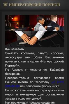 Обратившись к нам, Вы гарантированно получите вещь, которая станет предметом гордости. Безупречный стиль, создаваемый дизайнерами ателье, соответствует всем канонам Высокой моды. «Императорский портной», без преувеличения, является законодателем делового стиля. Посмотрев на вещи, изготовленные у нас, Вы сами сможете в этом убедиться. К нам обращаются люди из разных стран мира — России, Украины, Казахстана, США, Йемена, Великобритании и многих других.