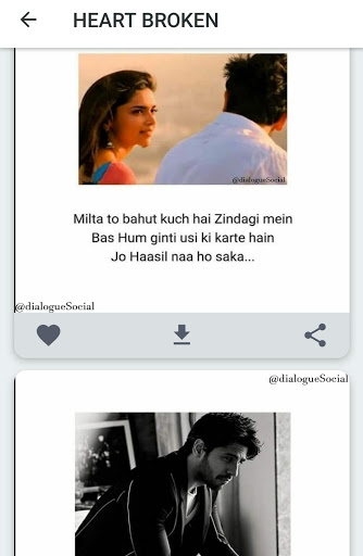 This Dialogue Social App is best collection of Romantic, Action, Drama, Comedy, Sad, Motivational famous dialogues.