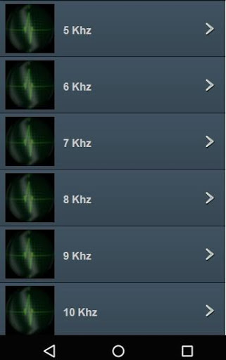 Test your hearing with High Frequency Sounds application. 16 different sounds with play and stop buttons to help you in testing. High Frequency Sounds can be a fun in your family. Play the frequencies to your parents and grandparents even in secret and watch the reaction! Let's be the focus of attention with High Frequency Sounds application!