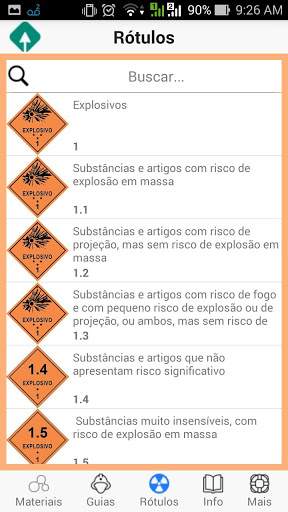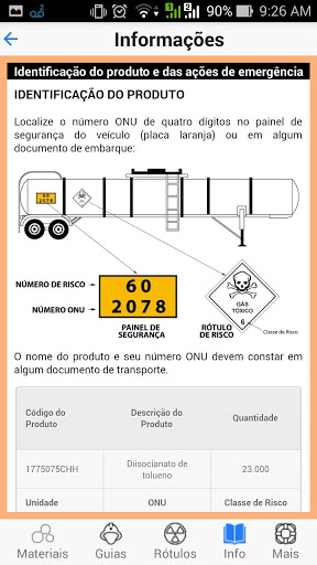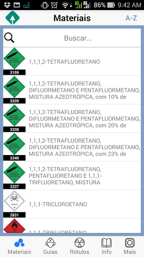 - por materiais (ordem alfabética ou número ONU);