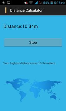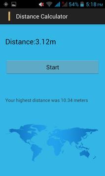 Distance calculator is application that allows you to calculate the distance between two points with just click of an button. All you have to do is press the button at your start point and press again when you reached your destination, our highest distance will be remembered.