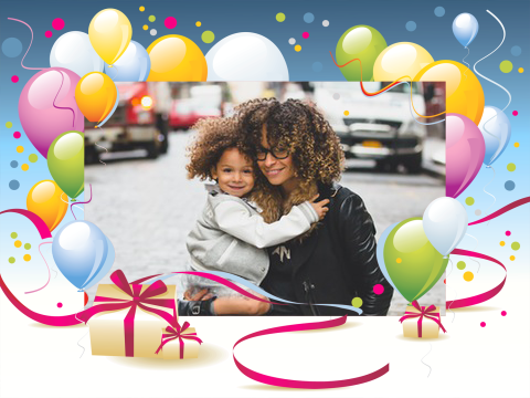 - Choose from more than 30 portrait and landscape birthday frames.