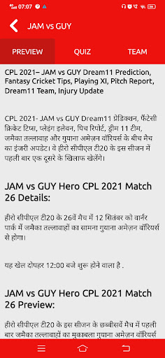 - Preview/Match Details with match analysis, Pitch reports, and CVC tips.