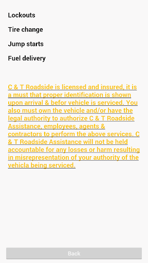 C & T Roadside Assistance created this app to give you 24/7 service when you need it. At your worst moments this app gives you the ability to call for service and talk to a live dispatch team at anytime day or night. C & T Roadside is locally owned and operated in Norfolk, VA and services the entire Hampton Roads. By downloading this app you'll receive great benefits such as 24/7 assistance, a live dispatch operator and fast ETA times. You'll also receive user discounts and get special promotions.