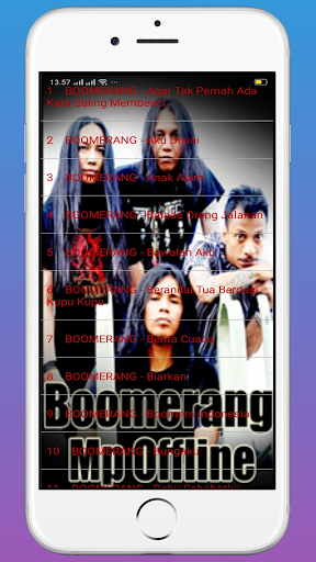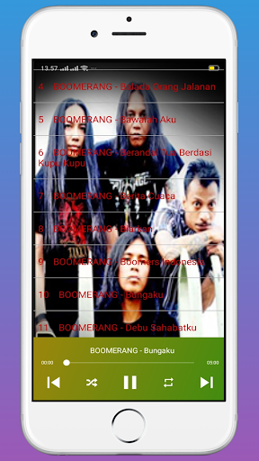 Aplikasi ini berisikan sekumpulan lagu terbaik band boomerang.