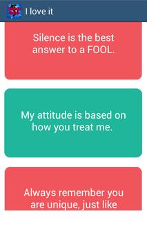 Attitude is the great feeling. People can be happy or sad with your attitude. If you have social profile in social platforms then this app help you to sort out the status crisis. Attitude status includes the life status, rocking, me status, I love me and many more. It has the English and Hindi status. If you want to send shayari or sms to your friends, this app includes more than 500 statuses. Each items are fresh and new in market