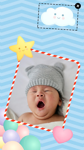In baby pics app free Baby Photo Editor you can add the cutest baby stickers on photo!