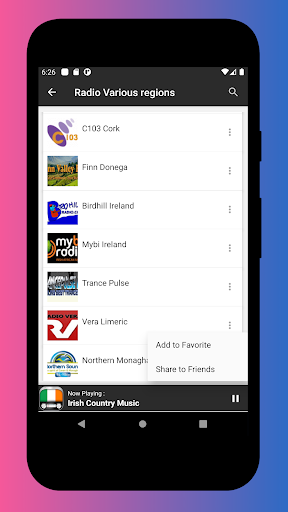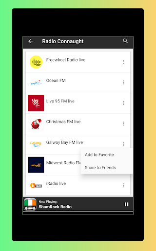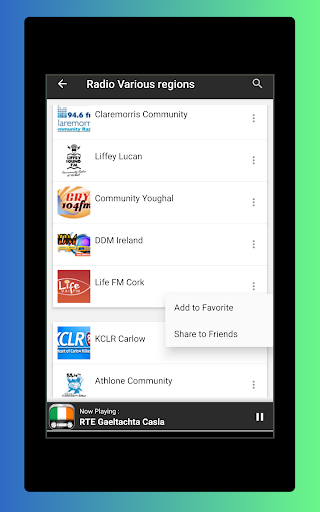 - Favorite section to save your favorite Irish radio to listen to.