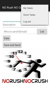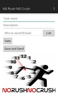 No Rush No Crush |Time Management tasks clock countdown. 1. Set-up Task you want to send to other person 2. Set-up time management countdown clock of task 3. Add email person you want to send task 4. Full time control time to the end of task