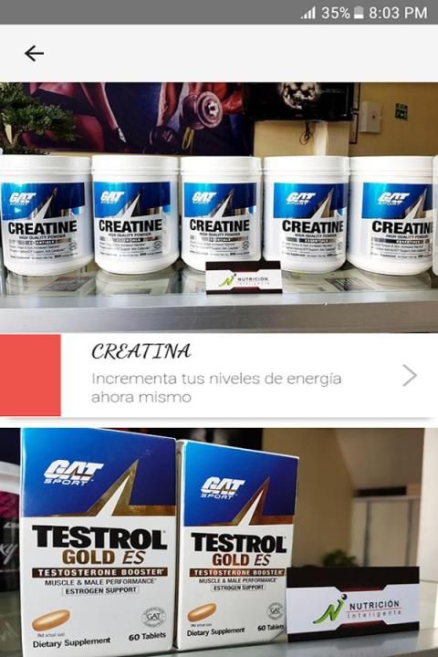 Nutritional supplements. Proteins, creatine, glutamine, thermogenic (fat burner) CLA, vitamins and minerals, nitric oxide.