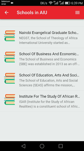 The AIU app answers all the questions you could ask about AIU before enrolling. With AIU app you will be able to: View all the schools and faculties, view courses in each school, pre-apply your preferred course, get news and events taking place at the university, get help and assistance, just to mention a few. This app will save you the hassle of traveling to the university for inquiries.