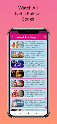 The app offers the 2021 Letest Bollywood Songs collection by Neha Kakkar.