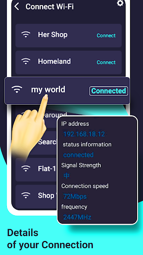 WiFi connection Manager - WiFi Signal Strength Meter can View your current WiFi connection signal strength and detect WiFi Signal Strength around you in real time.WiFi Network Analyzer & WiFi Speed Test can Quickly check your WiFi strength to assist you discover the simplest location. WIFI password master can View your current WiFi connection signal strength and detect Wi-Fi Signal Strength around you in real-time. WIFI password key show can tell you WiFi signal strength and see witch Wi-Fi signal is best .