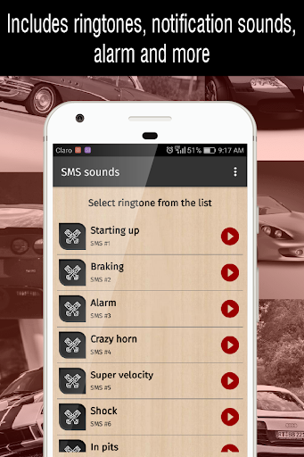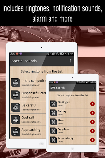 car sounds ringtones is an app designed especially for your cell phone, with a great collection of ringtones that you can use as: ringtones, sms sounds, alarm or notification.