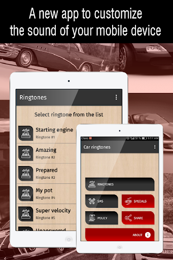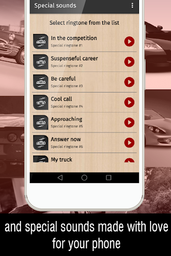 Looking for new ringtones for your mobile device? Download the new car ringtones app and personalize the sound of your device by choosing the one you like best from the wide variety of free phone sounds available.