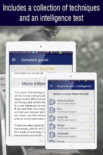 Find in this training dogs app an important content related to training and educating your dog. Our application works on Android devices and has the following features: