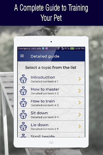 Now available in the Play Store to download and enjoy on your mobile device our app dog training guide, where you will learn about dog training and learn important techniques on how to train your dog.
