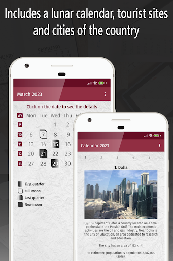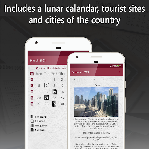 Download and enjoy our app qatar calendar 2023, a calendar holiday app to enjoy and get to know each public holidays 2023 in your android phone.