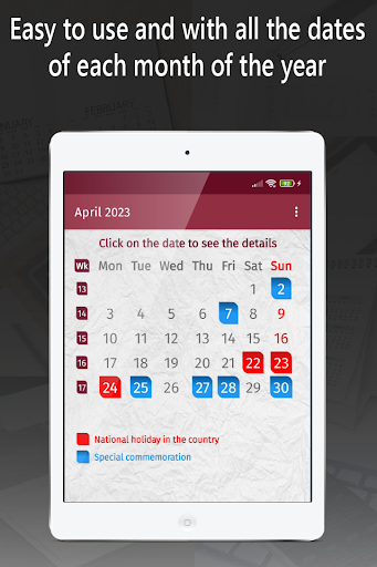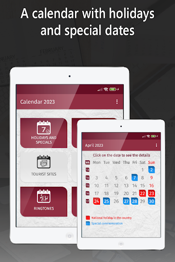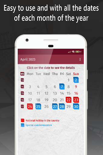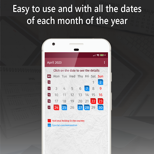 So, ¿what are you waiting for? Download now your calendar with festivals and holidays 2023. And please don´t forget to share and comment in Play Store; your opinion is so important for us and help us to continue developing more Apps.