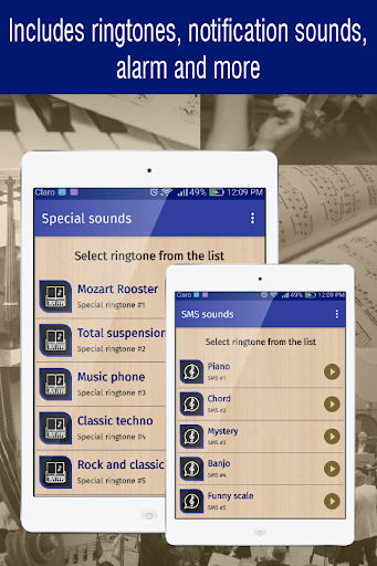 classical ringtones is an app designed especially for your cell phone, with a great collection of classical sounds that you can use as: ringtones, sms sounds, alarm or notification.