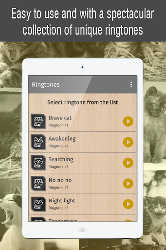 cat ringtones free is an app designed especially for your cell phone, with a great collection of sounds cat that you can use as: ringtones, sms sounds, alarm or notification.