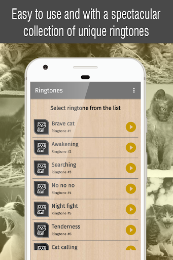Do not forget that you need an internet connection for the correct use of the cat ringtone app and to be able to access the download of all free ringtones for your cell phone.
