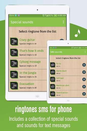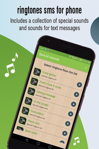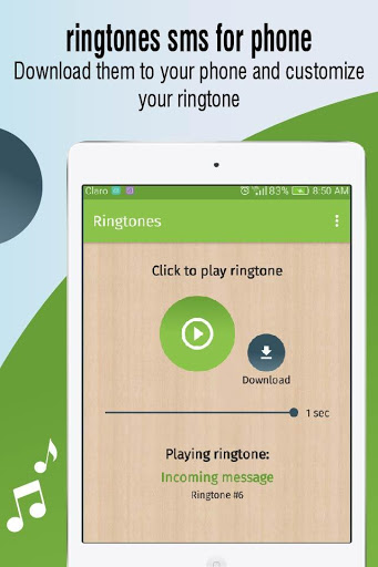 ringtones for sms messages is the new ringtones app to enjoy great sound sms ringtone and tones (special sounds and sms tones included), it has a friendly interface, easy to use and fast and the connection to the servers is good optimized.